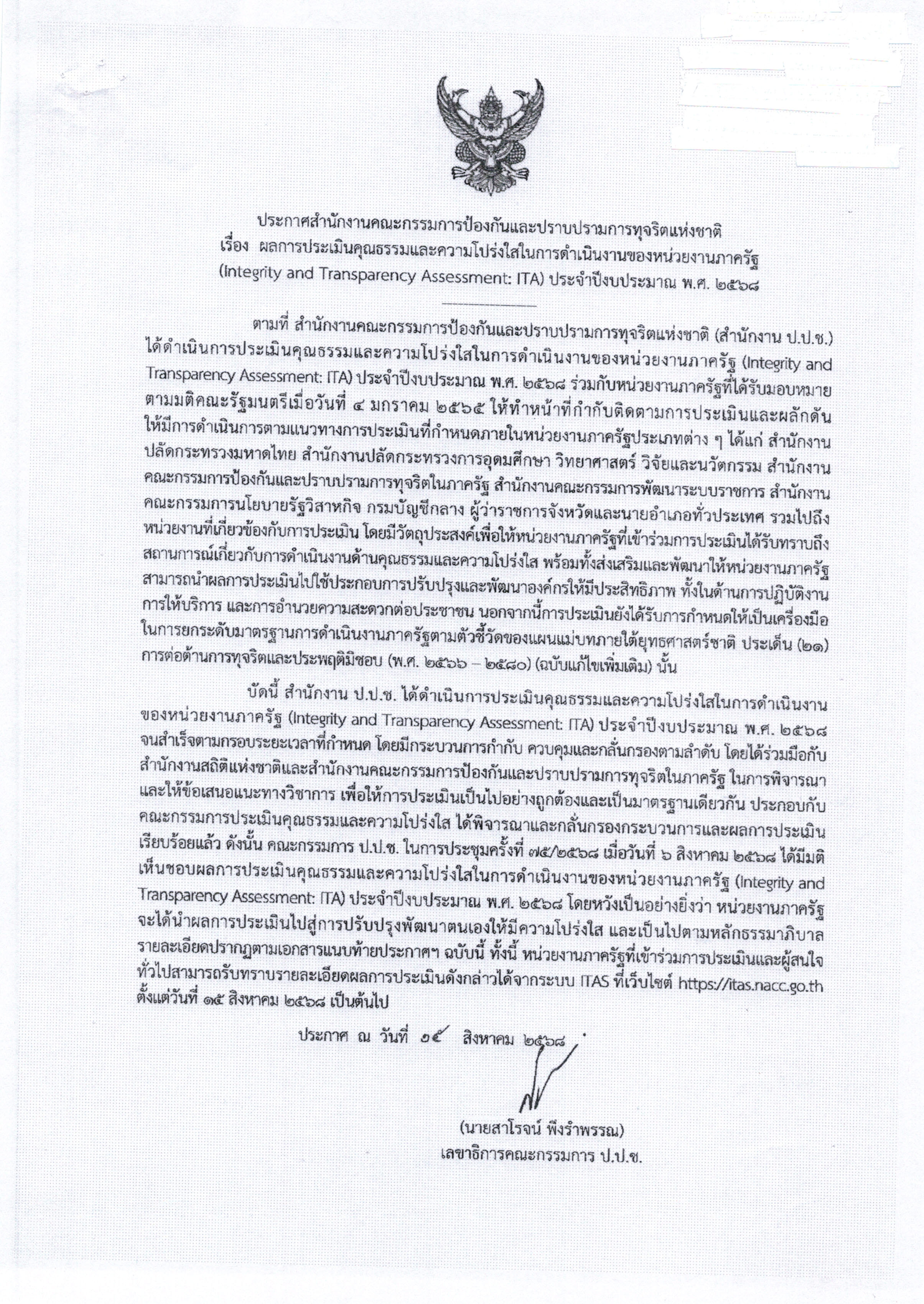 การประเมินคุณธรรมและความโปร่งใสในการดำเนินงานของหน่วยงานภาครัฐ (ITA)